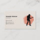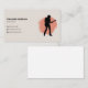 A simple business card for a guitar teacher or a guitarist performer, with an illustration of a silhouette of a guitarist playing an electric guitar on vintage pink colour stain. It comes with contact information illustrated by icons.
