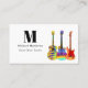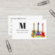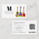 Elevate your professional presence with this eye-catching business card designed for guitar teachers and musicians. Featuring original artwork by Catherine Sweetman, the vibrant design showcases a collection of psychedelic acoustic, semi-acoustic, and electric guitars in bright colours. This easy-to-use template is fully customisable with your personalised monogram, contact details, website QR code, and social media icons, making networking a breeze. Make a memorable impression with this cool and modern business card.