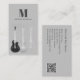 Semi acoustic guitars in cool monochromatic grey on a grey background complete with personalised monogram, name, details and QR code. The perfect simple business card design for guitarists, professional musicians, entertainers and music teachers. Original artwork by artist Catherine Sweetman
