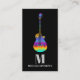 Colourful electric semi acoustic guitar in funky psychedelic bright colours, a cool musicians professional business card design complete with personalised monogram initial, name and contact details using the easy to use template. Any guitarist or musician will tell you that you can never have too many guitars. This fun colourful guitar celebrates the energy and variety of this wonderful musical instrument. The perfect design for guitarists, musicians and music lovers. Unique original artwork design by artist Catherine Sweetman