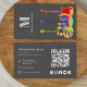 Guitar music teacher musicians grey business card with website QR code template and contact social media icon and details perfect for business networking. Psychedelic acoustic guitar, semi acoustic guitar and electric guitar in bright colours on a grey background complete with personalised monogram, name, details and your website QR code. Cool modern musicians business card design for guitarists, professional musicians, entertainers and music teachers. Original artwork by artist Catherine Sweetman