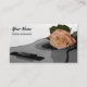 Design features an acoustic guitar topped by a peach-coloured rose. Personalised business cards feature spaces for name, title, phone number, email address, and website details. Customise further with any other text of your choice. Design tip: For long names you may need to adjust text size down.