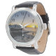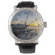 Wrist watch featuring a view standing beside a jetty wall and behind a leaning sailboat shipwreck in the water during gold hour sunset in Gulf Breeze, Florida. This is in the Pensacola Bay area. Looking for more prints or products? Feel free to visit my store: http://www.zazzle.com/timelessmomentsphtgy