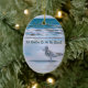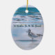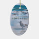 A lonely seagull stands like a sentinel while its shadow stretches across the wet sands at Myrtle Beach, South Carolina as small waves lap at the deserted shoreline in the pastel artwork on this ornament along with easy to customise text.