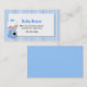 Whimsical blue and white play date calling card, done with a striped pattern background and an embossed looking white text area. A pastel blue coloured gumball machine decorates the bottom left corner. Personalise the text for child. Great way to stay in touch with other moms and arrange play dates, birthday parties, and baby sitting co-ops.