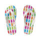Kids' flip flops with a colourful and bright pattern of gummy bears. The gummy bears face sideways or forward. This is a colourful, fun, candy design. If you feel like you could use a few more gummy bears in your life, then this design is here for you.
