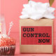 Gun Control Now: a simple statement in bold black text on a red linen photo background to let Republicans know you are fed up with shootings and mass shootings that have become all too common in the United States. Doing nothing clearly does not help protect anyone. Show that you want gun law reform.