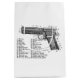 A vintage image of a gun diagram for a semi-automatic 45 calibre handgun.
