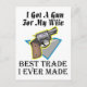 I got a gun for my wife. Best trade I ever made. This funny t-shirt lets the world know how you really feel about her.