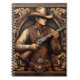 A wood carving of a cowboy, clad in traditional attire, defiantly holding a gun in his hand. The intricate details capture the spirit of the Wild West.
