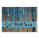 This is based on classic nature painting artworks by Gustav Klimt, Beech Grove 1, 1902. The artwork portrays a dense forest of tall, slender birch trees, with pale trunks marked by dark, vertical lines. The foliage is depicted in shades of blue, green, and yellow, adding a sense of depth and vibrancy to the scene. The forest floor is covered in a layer of orange and brown leaves, creating a striking contrast with the lighter tree trunks. The overall composition uses pointillist and impressionistic techniques, giving the image a lively, textured appearance. The verticality of the trees emphasizes the serene and rhythmic structure of the forest.