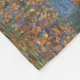 This is based on classic nature painting artworks by Gustav Klimt, Beech Grove 1, 1902. The artwork portrays a dense forest of tall, slender birch trees, with pale trunks marked by dark, vertical lines. The foliage is depicted in shades of blue, green, and yellow, adding a sense of depth and vibrancy to the scene. The forest floor is covered in a layer of orange and brown leaves, creating a striking contrast with the lighter tree trunks. The overall composition uses pointillist and impressionistic techniques, giving the image a lively, textured appearance. The verticality of the trees emphasizes the serene and rhythmic structure of the forest.
