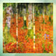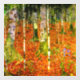 Window Cling featuring Gustav Klimt’s painting Farmhouse with Birch Trees (1903). An autumnal landscape of orange leaves in a birch forest with beautiful blue flowers. A wonderful gift for fans of Art Nouveau and Austrian art.