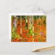 Postcard featuring Gustav Klimt’s painting Farmhouse with Birch Trees (1903). An autumnal landscape of orange leaves in a birch forest with beautiful blue flowers. A wonderful gift for fans of Art Nouveau and Austrian art.