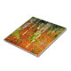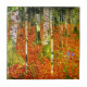 Tile featuring Gustav Klimt’s painting Farmhouse with Birch Trees (1903). An autumnal landscape of orange leaves in a birch forest with beautiful blue flowers. A wonderful gift for fans of Art Nouveau and Austrian art.