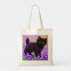 Tote Bag featuring a Gustav Klimt black kitten! This wide-eyed beauty poses in a green field of purple flowers. A thoughtful gift for cat lovers and Austrian art enthusiasts!