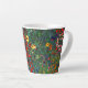 Latte Mug featuring Gustav Klimt’s oil painting Farm Garden with Sunflowers (1907). A beautiful garden of sunflowers and exquisite blue, red, purple, pink, and white flowers. A great gift for fans of Art Nouveau and Austrian art.