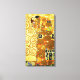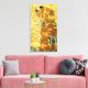Gustav Klimt Fulfilment canvas poster. Frieze from 1909. Completed during Klimt’s golden phase, Fulfilment features an embracing couple holding each other beneath a multi-patterned quilt featuring spirals, eyes, birds, fish and other shapes. The background of the work features the same bronze spirals that would adorn the artist’s renowned Tree of Life. A great gift for fans of Gustav Klimt, Austrian symbolism, allegorical painting, and art nouveau.