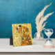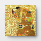 Gustav Klimt Fulfilment plaque. Frieze from 1909. Completed during Klimt’s golden phase, Fulfilment features an embracing couple holding each other beneath a multi-patterned quilt featuring spirals, eyes, birds, fish and other shapes. The background of the work features the same bronze spirals that would adorn the artist’s renowned Tree of Life. A great gift for fans of Gustav Klimt, Austrian symbolism, allegorical painting, and art nouveau.