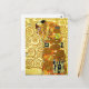 Gustav Klimt Fulfilment postcard. Frieze from 1909. Completed during Klimt’s golden phase, Fulfilment features an embracing couple holding each other beneath a multi-patterned quilt featuring spirals, eyes, birds, fish and other shapes. The background of the work features the same bronze spirals that would adorn the artist’s renowned Tree of Life. A great gift for fans of Gustav Klimt, Austrian symbolism, allegorical painting, and art nouveau.