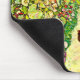 Mouse Pad featuring Gustav Klimt’s oil painting Garden with Roosters (1917). Two brown chickens stand on a garden path. Beautiful pink, red, and white flowers bloom along the path. A great gift for fans of Art Nouveau and Austrian art.