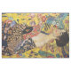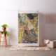 This half portrait of a beautiful woman shows a yellow background with asiatic ornaments, colourful birds and lotus flowers. The lady wears a dress in the style of a kimono imprinted with motives of a Chinese dragon dress.