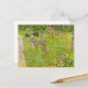 Postcard featuring Gustav Klimt’s oil painting Orchard with Roses (1911). Also known as Obstgarten mit Rosen, a vibrant and green orchard is beautifully portrayed. Pink roses and other purple and red flowers line the orchard path. A marvellous gift for fans of Art Nouveau and Austrian art!