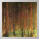 Reproduction landscape print of the painting "Pine Forest II" by renowned Austrian Symbolism artist Gustav Klimt (1862-1918). The poster depicts a bare Austrian pine forest during autumn showing topless tree trunks and the forest floor. There are strong red, brown, and green influences in the painting. c. 1901 Style: Symbolism Period: Golden phase