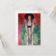 Card featuring Gustav Klimt’s oil painting Portrait of Adele Bloch-Bauer II (1912). A woman in a black hat stands in a beautiful landscape of vivid red, purple, pink, and green with flowers and horses. A great gift for fans of Art Nouveau and Austrian art.