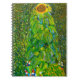 Gustav Klimt The Sunflower notebook. Oil painting on canvas from 1907. Austrian artist Gustav Klimt is most recognised for the portrait work he completed during his golden period, however he also painted some beautiful garden and landscape paintings. Sunflower is arguably his most famous flower painting. A large sunflower bends towards a green field full of other colourful flowers under the weight of its heavy blossom. A great gift for fans of Gustav Klimt, sunflowers, Austrian symbolism, and art nouveau.