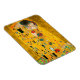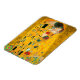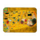 Magnet featuring Gustav Klimt’s oil painting with gold leaf The Kiss (1908). A man and woman, wearing brilliant golden colours, lovingly embrace and kiss in a field of flowers. A great gift for fans of Art Nouveau and Austrian art.