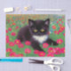 Tissue Paper featuring a Gustav Klimt tuxedo cat! This adorable black and white kitty sits in a field of red, blue, white, and orange flowers. An awesome gift for cat lovers and Austrian art enthusiasts!