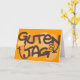 Hello in German - Guten tag in a simple graffiti style font with decorative elements like arrows. The background is made from yellow and orange circles.