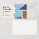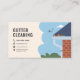 Business card with an illustration of a roof and gutter of a house and some fall leaves, on behind a blue sky, with a cloud. Full customisable contact information are decorated with icons, on a beige background. It could be used for small business such as roof and gutter cleaning or repair, handyman, pressure washing service, etc.