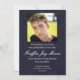 Celebrate your grad’s milestone achievement with this simple, modern style photo graduation announcement. The front features a photo of your graduate, class year, name and school name. The back features a second photo of your grad with the announcement details and plans for college. Everything is totally customisable. If you’d like to change font styles and colours, this can be done in the design tool to make this card totally personalised. Feel free to browse our entire Guy Grad Modern Graduation Collection for more coordinating products to make the entire celebration cohesive.
