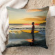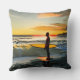 Guy on Beach with Surf Board Sunset Cushion
