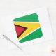 The Guyanese flag is a green field with a triangle over a triangle on the left. The used colours in the flag are red, green, yellow, white, black. The proportion of the Guyanese flag is 3:5. The Flag of Guyana was adopted in 1966.