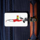 Beautiful luggage tag showcasing woman with stylish Guyana Flag purse.