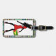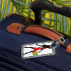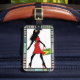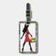 Patterned luggage tag showcasing woman with stylish Guyana Flag handbag.