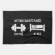 Gym and Bed - Funny Cartoon Pictogram - Novelty Tea Towel