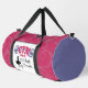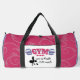 Colourful and fun gym bag with a woman lifting weights while adored by her cat! Wording under the headline of "Gym Bag" reads: "You've gotta hustle for your muscle". Available in small and large sizes!