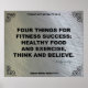 The exercise quote reads: FOUR THINGS FOR FITNESS SUCCESS: HEALTHY FOOD AND EXERCISE, THINK AND BELIEVE. ~ Felicity Luckey