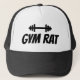 Gym Rat trucker hat with dumbbell logo. Cool cap for fitness enthusiast, personal trainer, weight lifter, workout guy, gym lad etc.