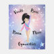Girls Gymnastics Vault, Bars, Beam, Floor personalised design. This Gymnast is wearing a Purple Long Sleeve Gymnastics Leotard with light pink and turquoise. Her hair is Black and her eyes are Brown. New colour combinations on leotard, hair, eyes and skin are coming out in my shop so stay tuned!