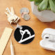 Keychain with a silhouette of a female gymnast in action. Available in different colours and on other products at my store.