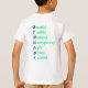 The t-shirt feels and looks great quality, a good thick cotton. It will be a little big for my son, but that means he will be able to wear it and not out grow it too soon. The print was as described on the order when personalised. True size, shape and colour T-shirt- thanks.