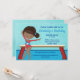 This cute girls gymnastics birthday party invitation features a pretty African American gymnast girl standing in front of a beam. She is wearing a red leotard and smiling to invite people to her fun tumbling kids party at the local gymnasium. Beautiful blue custom text for your black little girl.