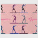 Gymnastics Balance Beam Wrapping Paper - This design consist of eight multicolored gymnast silhouettes on balance beam, some sparkly some solid colours but all just a little different. Also the word gymnastics is written in a script font across the centre. This gymnastics wrapping paper is perfect for wrapping up all your birthday and holiday gifts for your favourite gymnast!