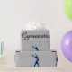 Gymnastics Balance Beam Wrapping Paper - This design consist of eight multicolored gymnast silhouettes on balance beam, some sparkly some solid colours but all just a little different. Also the word gymnastics is written in a script font across the centre. This gymnastics wrapping paper is perfect for wrapping up all your birthday and holiday gifts for your favourite gymnast!