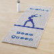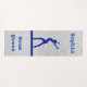 Gymnastics Beam Queen Custom Yoga Mat in silver and blue - One side of this design has the faux sparkle w/ gymnast on balance beam silhouette along with the name of your choice at the top and the gymnastics quote "beam queen" on the bottom. Flip this over and on the backside you'll see it says "gymnastics" in vertical form.